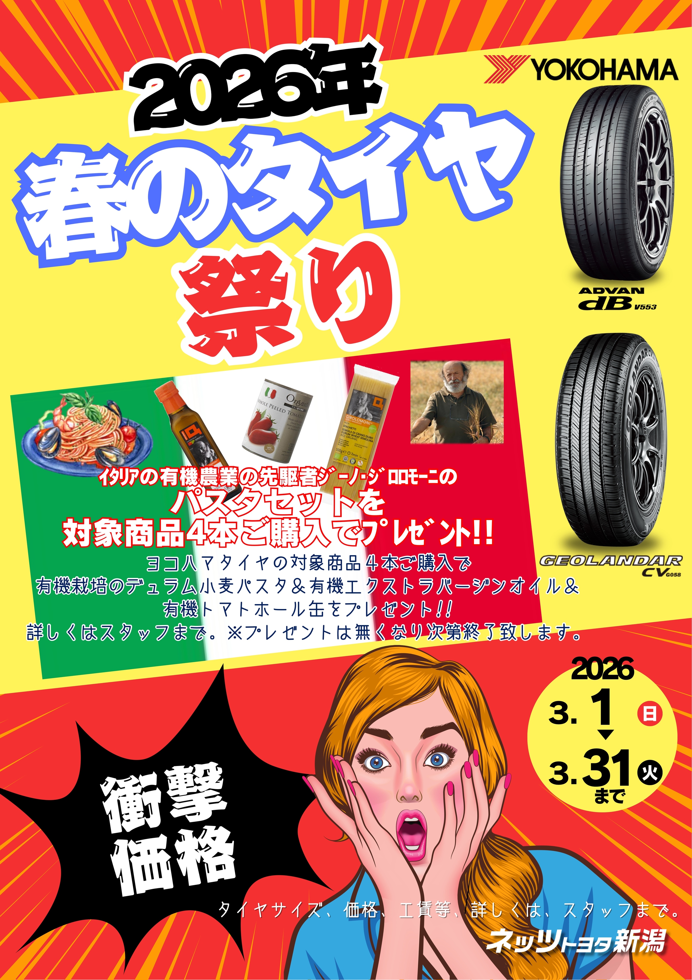 対象商品のタイヤ4本ご購入いただいた方にパスタセットをプレゼント!